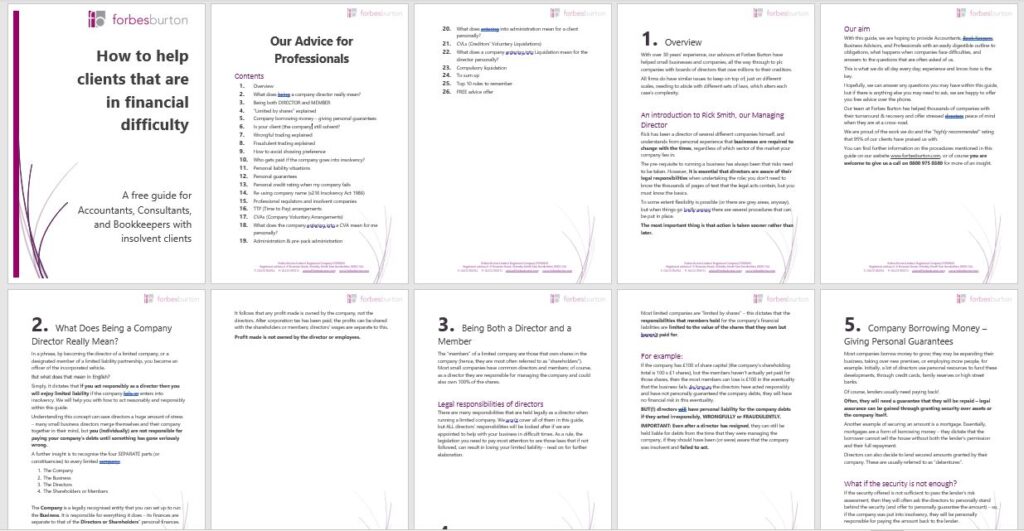 Are some of your clients insolvent or struggling financially? Find out what their options are and how you can help them in our guide, specially written for Accountants, Bookkeepers, Business Advisers, and other professionals with insolvent clients, for free now.